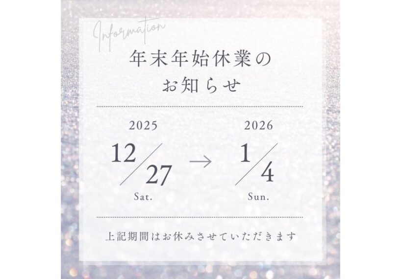 2025年12月27日(土)~2026年1月4日(日)までお休みさせて頂きます。