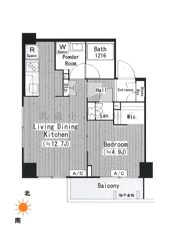 LDK(約12.7帖) 洋室(約4.9帖)  |