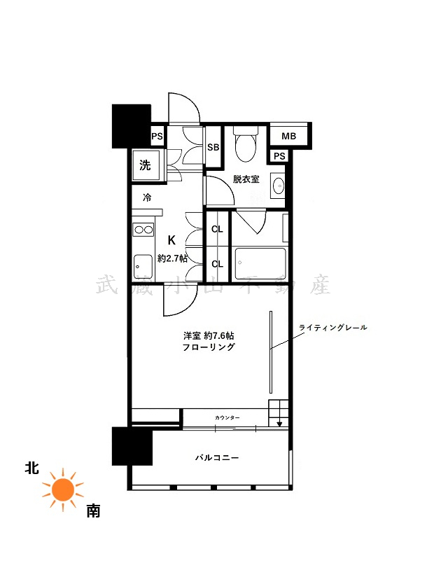 K(約2.7帖) 洋室(約7.6帖) |