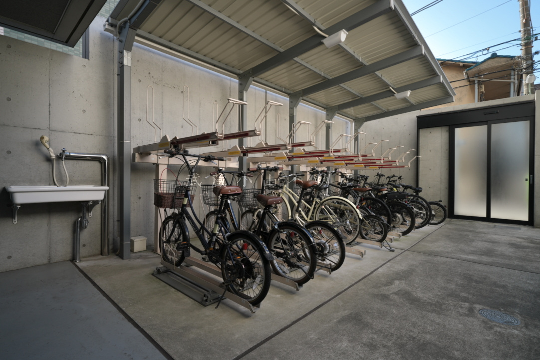 システムキッチン、2口ガスコンロ、バス・トイレ別、浴室換気乾燥機、24時間換気システム、追い焚き風呂、温水洗浄便座、独立洗面化粧台、脱衣スペース、室内洗濯機置場、洗面所独立、洋室、フローリング、クローゼット、収納、シューズボックス、エアコン、室内物干し、ペアガラス、バルコニー、2階以上、オートロック、TVモニター付インターホン、エレベーター、宅配BOX完備、防犯カメラ、専用ごみ置場(24時間タイプ)、自転車置場、バイク置場、インターネット接続可、