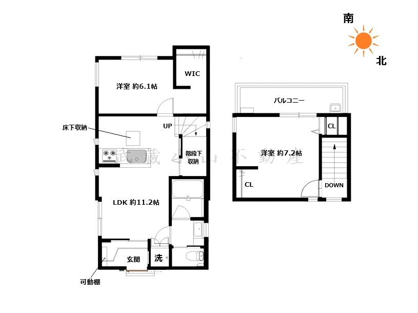 LDK(約11.2帖) 洋室(約7.2帖) 洋室(約6.1帖) |