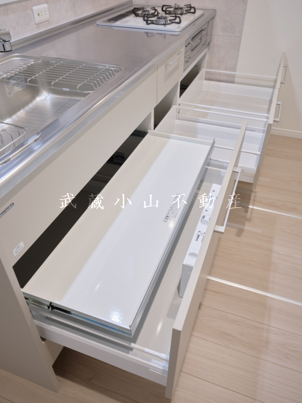 カウンターキッチン、システムキッチン、3口コンロ、ガスコンロ、グリル、バス・トイレ別、浴室換気乾燥機、24時間換気システム、追い焚き風呂、温水洗浄便座、独立洗面化粧台、脱衣スペース、室内洗濯機置場、洗面所独立、洋室、フローリング、ウォークインクローゼット、クローゼット、収納、床下収納、シューズボックス、エアコン、室内物干し、防犯シャッター、ペアガラス、バルコニー、角部屋、2階以上、最上階、モニター付インターホン、自転車置場(要空き確認)、ケーブルテレビ、インターネット接続可、2人入居可、お子様可、姉妹のルームシェア相談可(※友人同士のルームシェア不可)、短期解約違約金あり